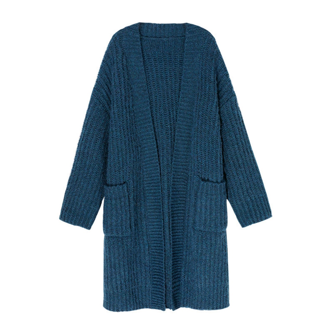 ファッション女性女性の冬厚く暖かいロングオープンstitich緩いソリッドカシミヤニットセーターロングアウターウェアカーディガントップ ウィンター 冬物 ソリッドカラー bel69209291614 | aliel