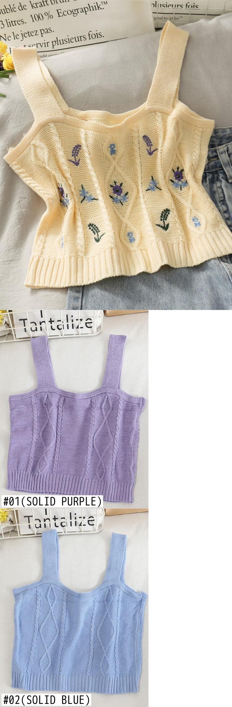 女性の花刺繍ニットクロップトップス女性チューブトップスリブかわいいトップスクロップトップス女性 2021 夏 大人ガーリー スウィート キュート カジュアル サマー 夏物 フラワーデザイン bel94161454915 | aliel