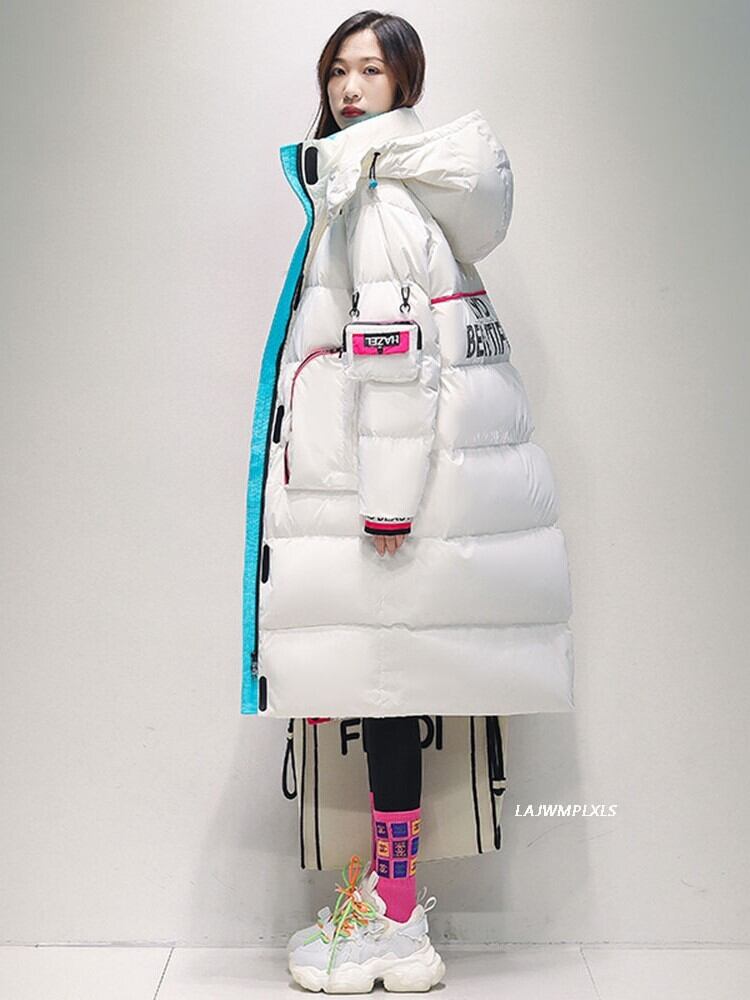 2022 冬の光沢のある防水 X ロング 90% ホワイトダックダウンコートの女性の厚い緩い上着ウォームダウンジャケットフード付きパーカー ウィンター 冬物 bel96580885805 | aliel