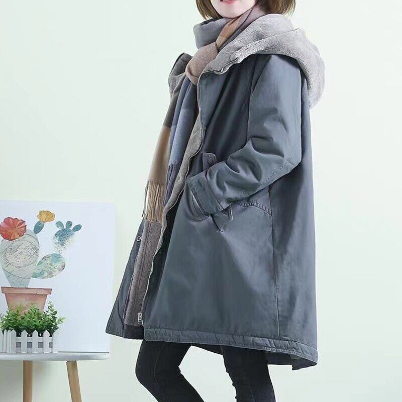 2021 プラスサイズの冬のジャケット厚いベルベットパッド入りコート女性のミッドレングスプラスフリースフード付きパーカーコート 大きめサイズ ウィンター 冬物 bel5281930045 | aliel