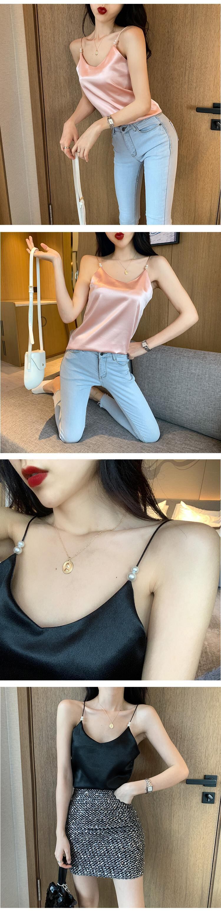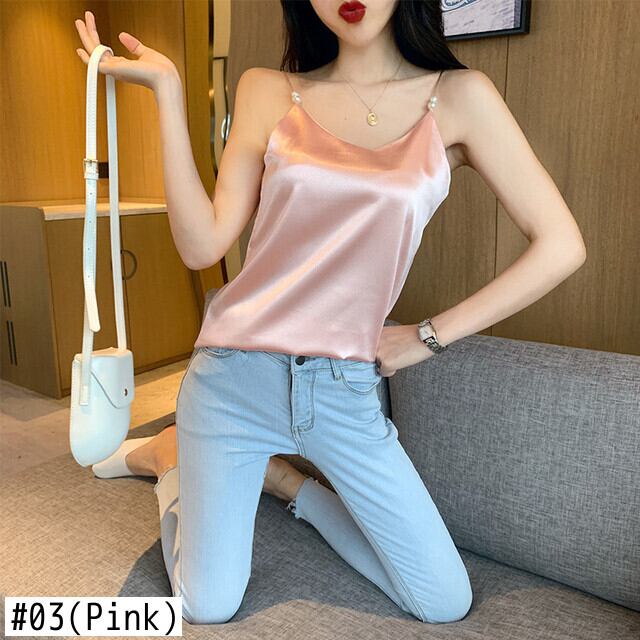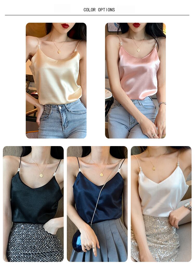 女性ホルターベーシックキャミノースリーブサテンビーズシルクタンクトップ夏キャミソールオフィスレディシャツスパゲッティストラップトップス サマー 夏物 会社 学校 通勤や通学にも bel89353449913 | aliel