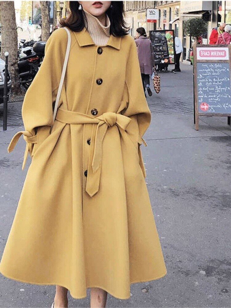 Bella Philosophy 秋冬無地ターンカラー女性コート OL サッシ A ラインウールコートランタンスリーブ生き抜く オータム 秋物 ウィンター 冬物 Aライン ソリッドカラー bel66912126151 | aliel