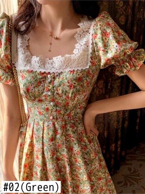 花自由奔放に生きるドレスの女性の夏 2022 フランスのレトロなレースのミディドレス半袖パーティー Cottagecore ドレス ショート ハーフスリーブ サマー 夏物 花柄 bel42766930030 | aliel