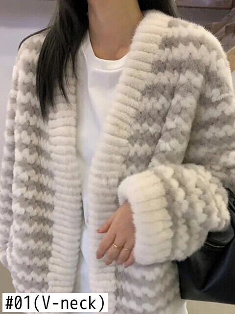 秋冬の女性のジャケットフェイクミンクファーコートミッドレングス O ネック V ネックニットトレンディコート オータム 秋物 ウィンター 冬物 Oネック Vネック bel85817387618 | aliel