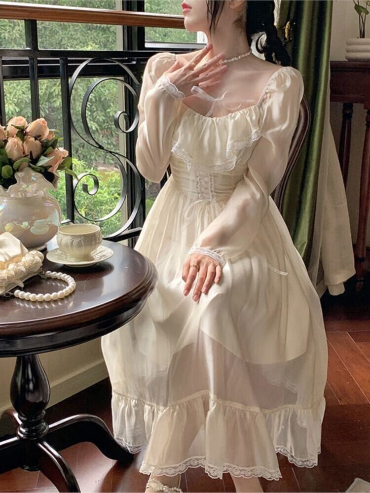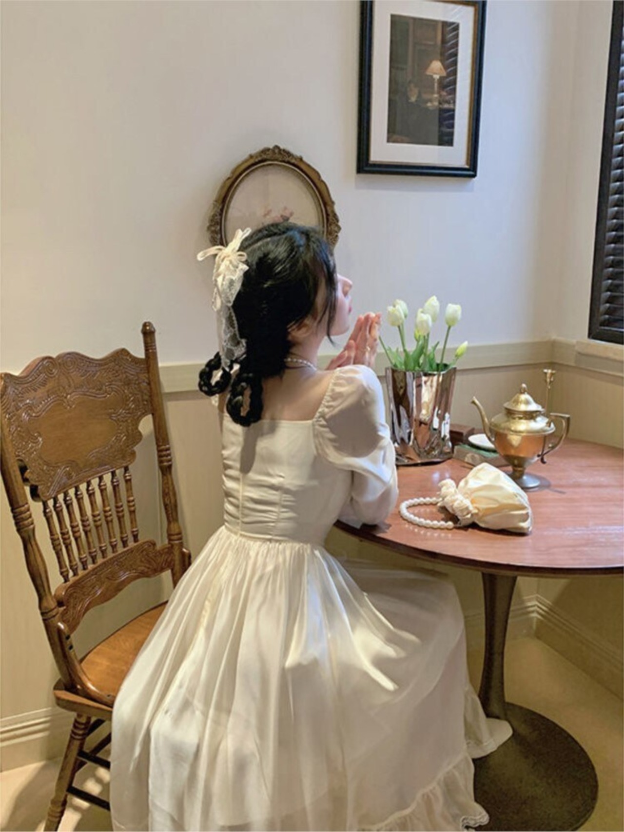 2022 夏春ファッションカジュアルドレスフレンチスウィート蝶ネクタイミッドレングスレースドレスドレス リボン 大人ガーリー キュート スプリング 春物 サマー 夏物 bel93598967353 | aliel