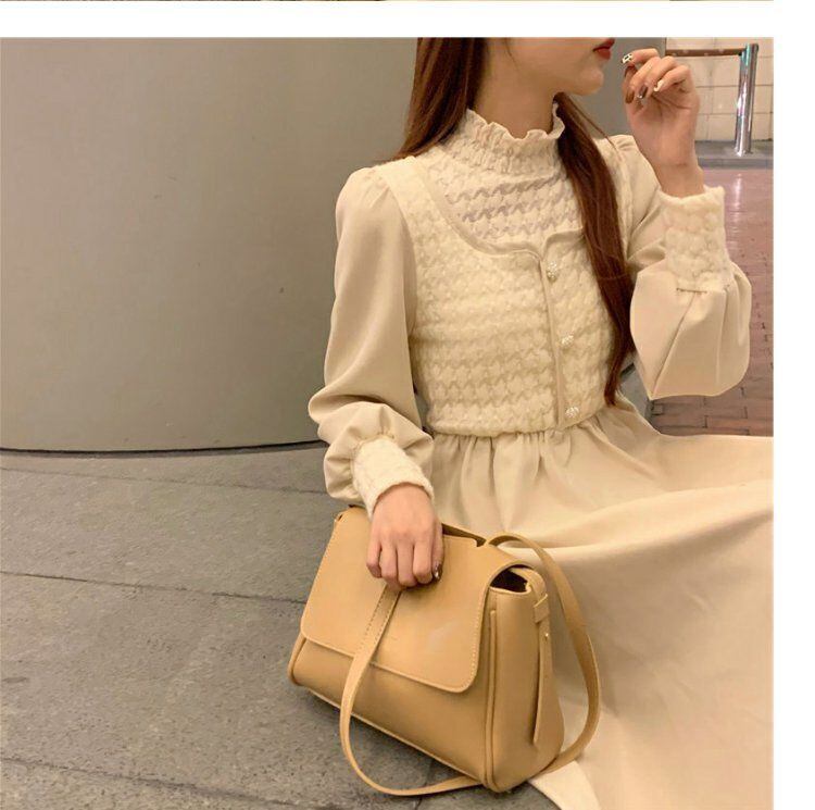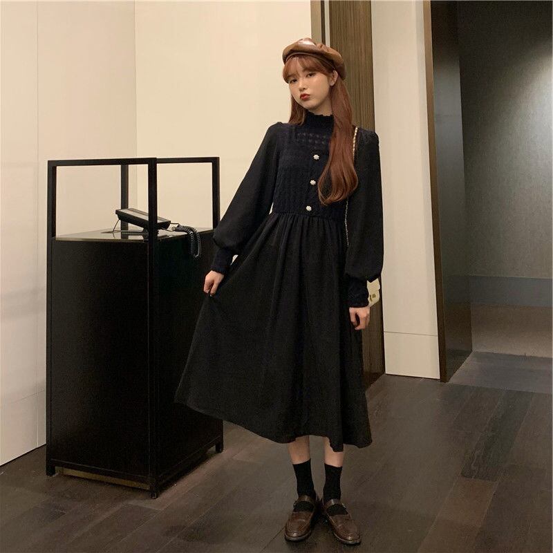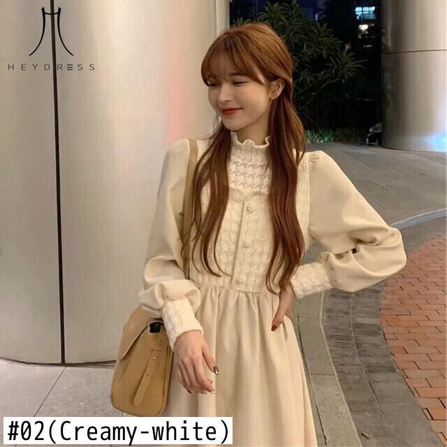 女性の秋のソリッドスタンドカラードレスランタンスリーブレースパーティードレスレディウエスト A ライン Vestidos オータム 秋物 Aライン ソリッドカラー bel10408286773 | aliel