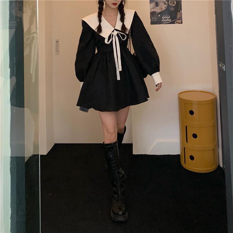 女性長袖シックなセーラー襟ドレス女の子服レースアップかわいい Vestidos パーティードレス vestidos デ noite simples curto ロング 大人ガーリー スウィート キュート カジュアル bel13278154781 | aliel