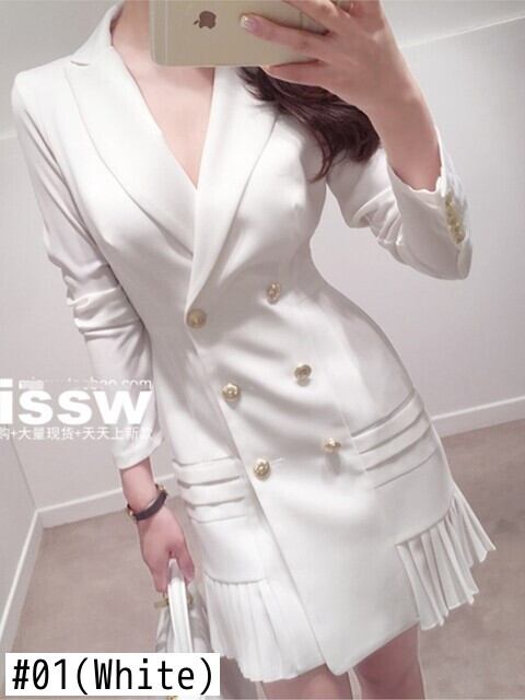 Bella Philosophy フリル ダブルブレスト女性ドレス オフィス ブレザー ホワイト ドレス秋冬スリム スーツ ドレス オータム 秋物 ウィンター 冬物 会社 学校 通勤や通学にも bel44428044301 | aliel