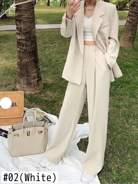 Bella Philosophy レディース オフィス ホワイト スーツ ツーピース パンツスーツ ブレザー セット ルーズ パンツ ジャケット 作業服 会社 学校 通勤や通学にも bel87425693245 | aliel