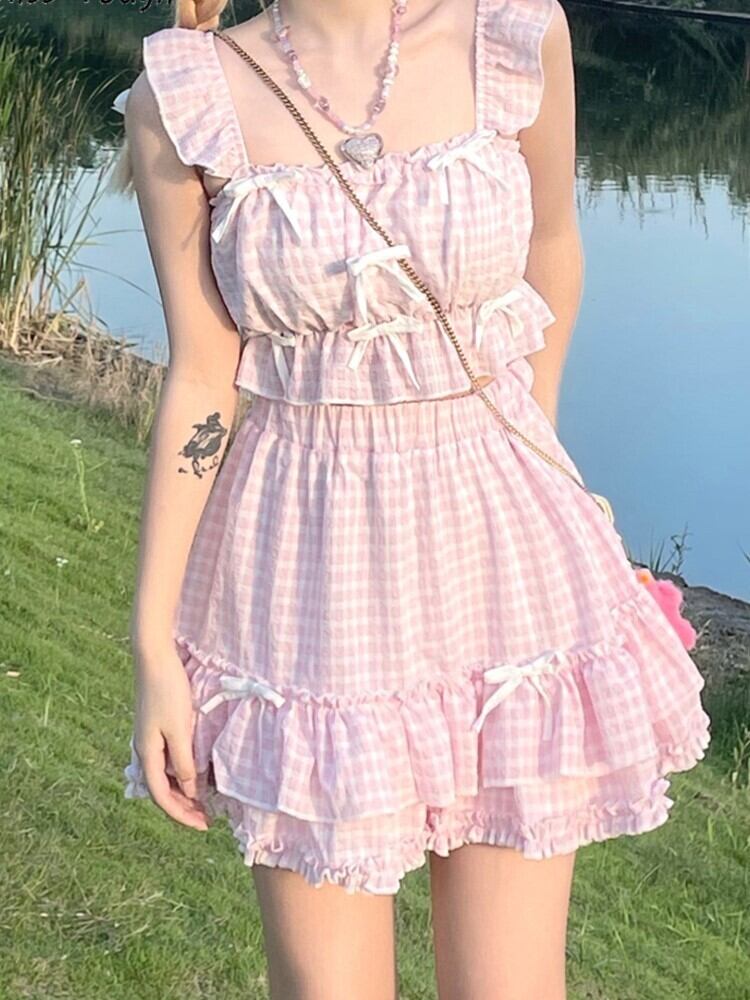 ese Sweet Two-piece Set Women& White Mini Skirt and Cropped Tops Set 2022 Bow Style Chic Suit ミニ ホワイト リボン 大人ガーリー スウィート キュート カジュアル スカート bel28591599021 | aliel