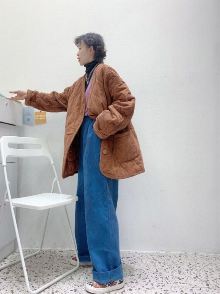 パーカー コート パッド入りジャケット冬の新しいバージョン緩いダイヤモンド グリッド ese シングルブレスト コーデュロイ コットン ジャケット ウィンター 冬物 bel9859987849