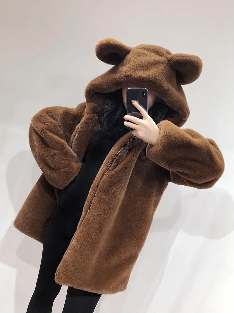 女性の冬の毛皮のコート 2021 かわいいクマの耳の毛皮のようなベルベットのパッド入りジャケット女性緩い模造ミンクの毛皮のオーバーコート 大人ガーリー スウィート キュート カジュアル ウィンター 冬物 bel31309057997 | aliel