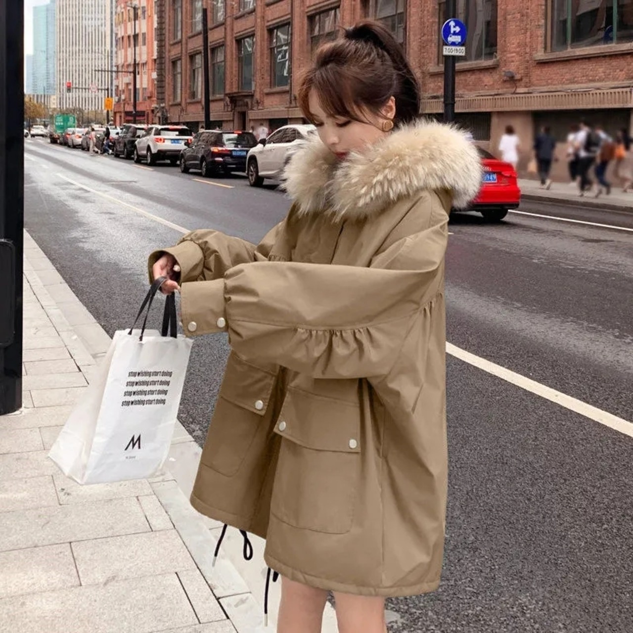 秋冬フード付きパーカーコットンジャケット女性のルースプラスサイズのコットンオーバーコートプラスベルベットウォームロングアウターウェア 大きめサイズ オータム 秋物 ウィンター 冬物 bel84242283070 | aliel