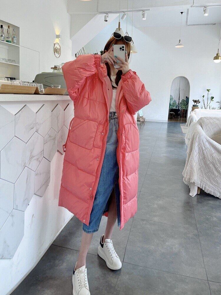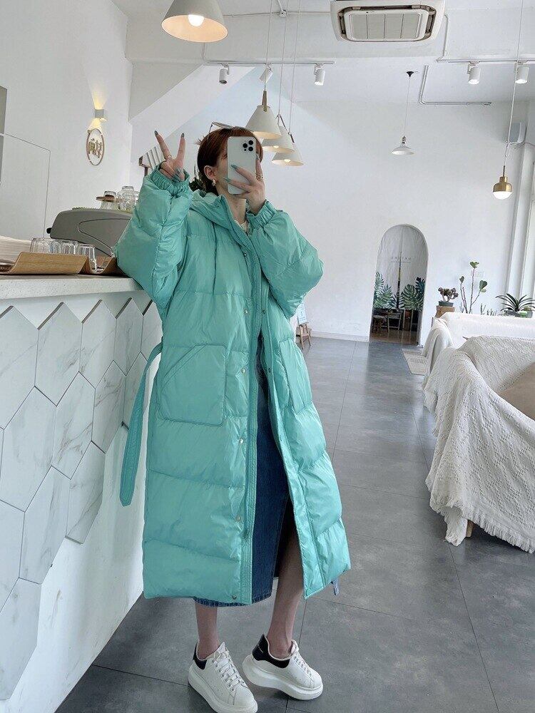 女性固体フード付きパーカー ピンク イエロー ロング ウォーム コート ベルト レディー 90% ホワイト ダック ダウン コート ハーネス ソリッドカラー bel76990921190 | aliel