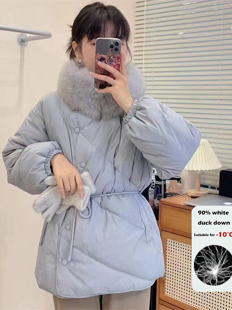 2022 女性の冬のコートリアルファーの襟固体パーカー 90% ホワイトダックダウンコートスリム暖かいコート ウィンター 冬物 ソリッドカラー bel32934511188