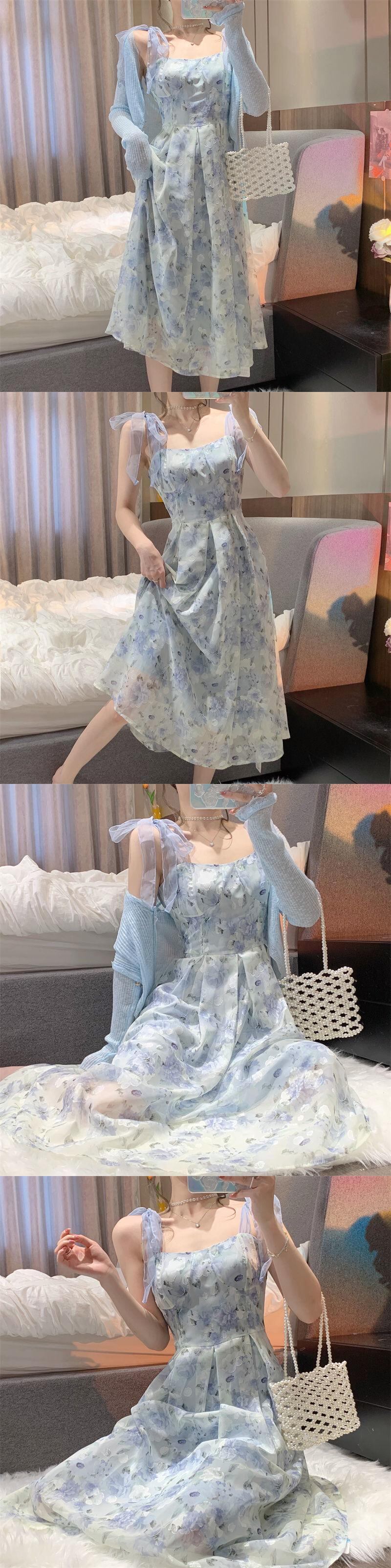 ストラップフローラルミディドレス女性スウィートプリント自由奔放に生きるドレス Cly パーティーホリデーフェアリードレス夏 大人ガーリー キュート カジュアル サマー 夏物 花柄 bel40268031837 | aliel
