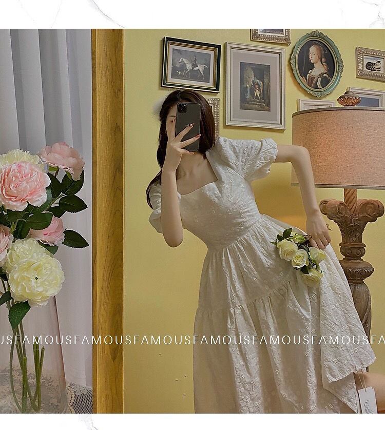 夏固体妖精ドレス女性 V ネック包帯甘いドレスパフスリーブパーティーミディドレス 大人ガーリー スウィート キュート カジュアル サマー 夏物 Vネック ソリッドカラー bel80671158965 | aliel