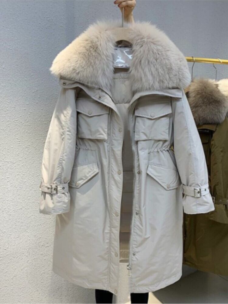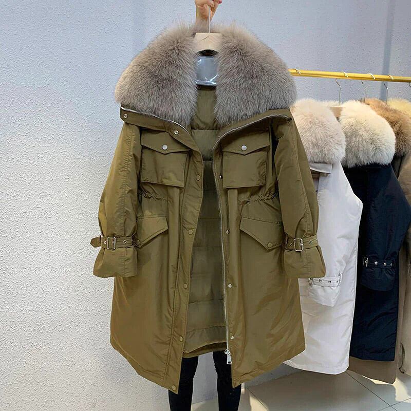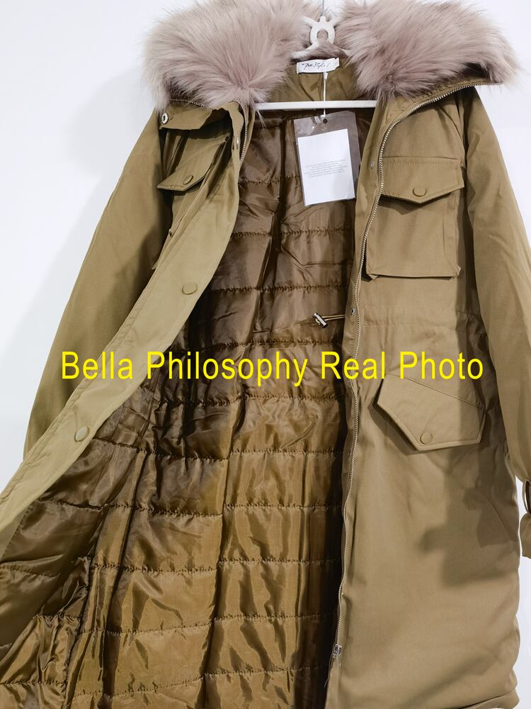 センスミッドレングスイミテーションキツネの毛皮の襟パーカーオーバーコート女性の 2022 冬の新ファッションパッド入りジャケット ウィンター 冬物 bel72164294703