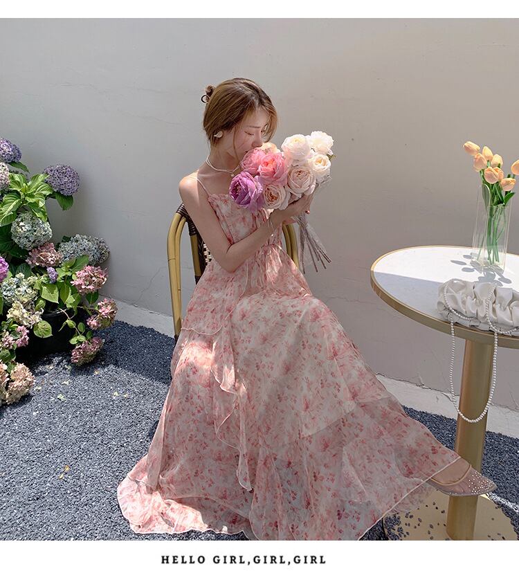 シフォンプリントドレス女性レトロセクシーな甘いフィットシックなスパゲッティストラップレースアップコルセットドレスホリデービーチサマードレス 2021 大人ガーリー スウィート キュート カジュアル 夏物 bel9204741944 | aliel