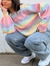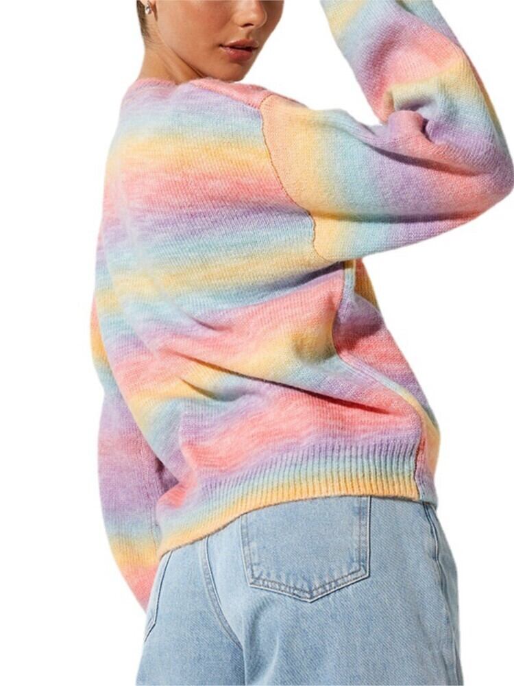 2022 秋と冬の新レインボーストライプグラデーションカラーラウンドネック長袖カジュアルプルオーバーセーター女性 ロング オータム 秋物 ウィンター 冬物 Oネック bel37149941949 | aliel