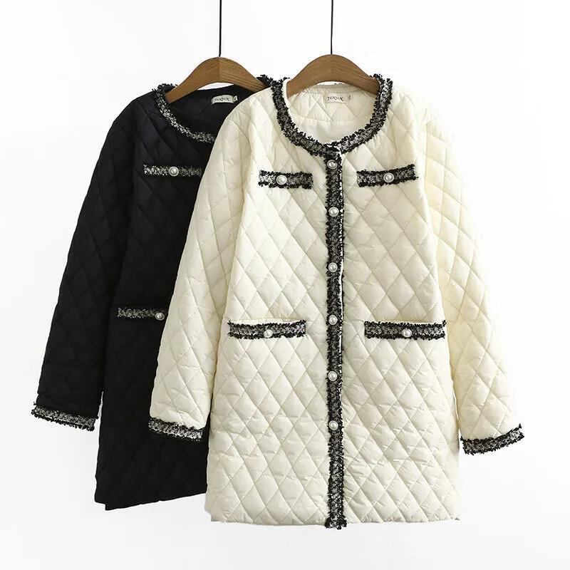 女性のスウィート O ネックパールボタン電話スプライシングダウンコットンコート超軽量ロング生き抜く無地スリム暖かい冬のコート 大人ガーリー キュート カジュアル ウィンター 冬物 Oネック 真珠 ソリッドカラー bel56415844933 | aliel