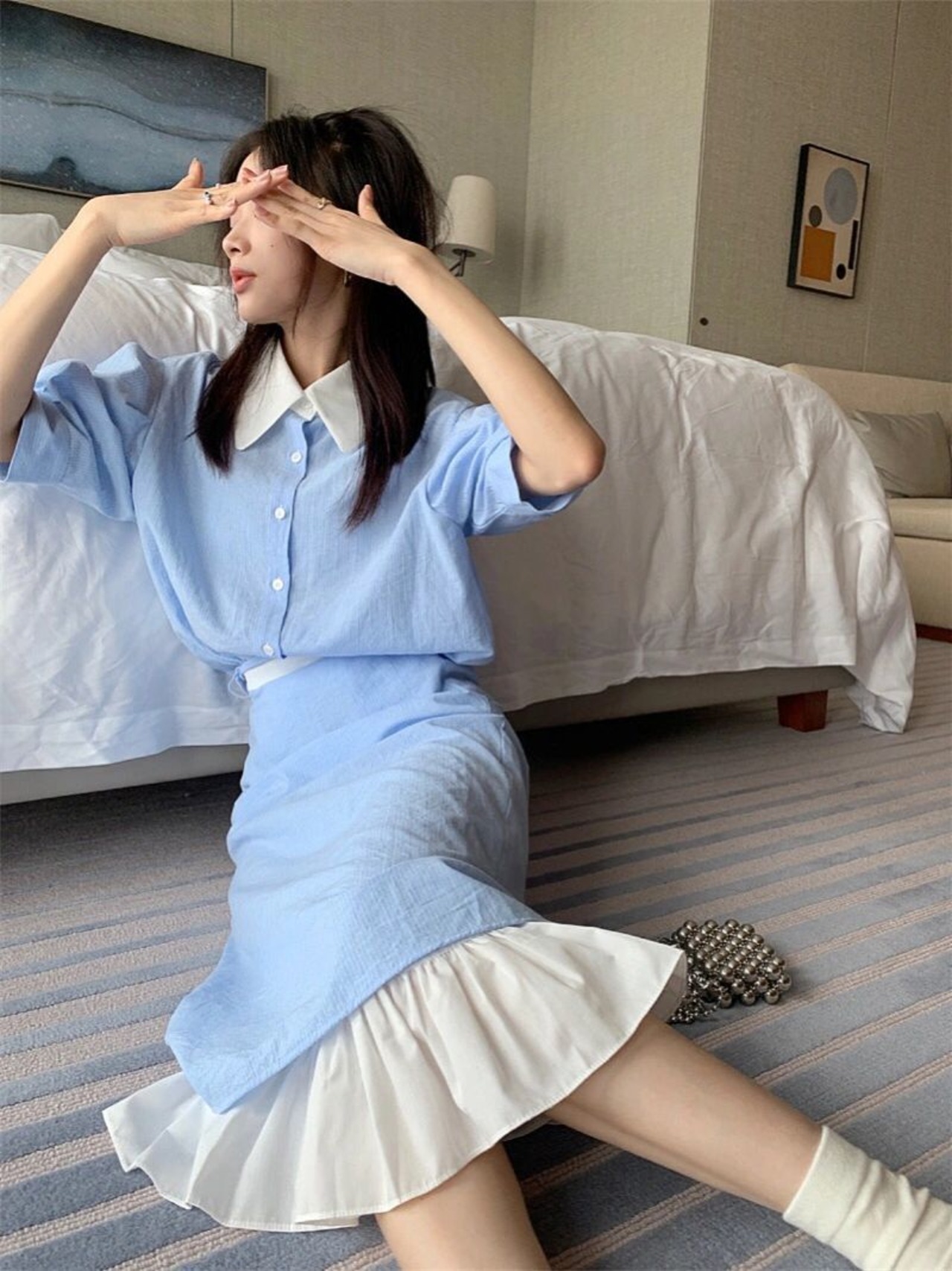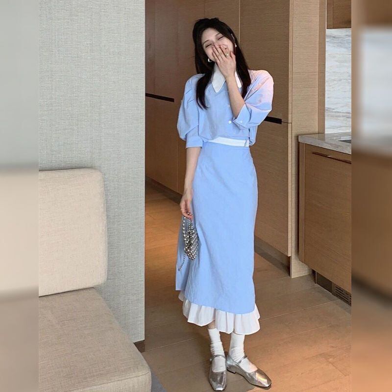 シックフレンチスーツ 2022年 秋感 フリルパフスリーブシャツ+ウエストAラインスカート 2点セット オフィスレディ ラッフル オータム 秋物 会社 学校 通勤や通学にも bel47326934941 | aliel