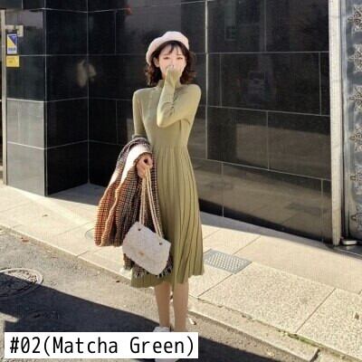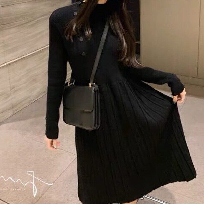長袖ソリッドプリーツドレス女性ボトム厚いニットスリムセーター Dresse 秋冬ウエスト Vestido ロング オータム 秋物 ウィンター 冬物 ソリッドカラー bel36595800902 | aliel