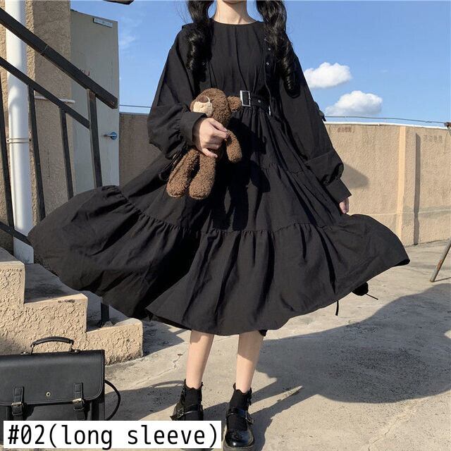 ゴシックスタイルドレス女性モールゴス原宿エモドレスゴシックパンク ese かわいい長袖黒ミディドレス ロング ブラック 大人ガーリー スウィート キュート カジュアル bel72079088664 | aliel