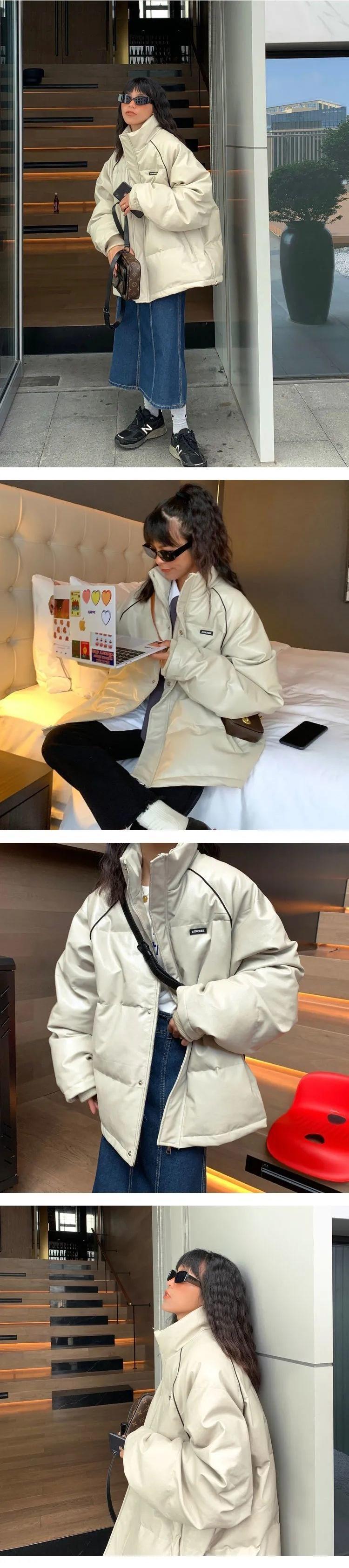 フェイクレザー中綿入りジャケット 冬 厚手 暖かい オーバーサイズ スタンドカラー ダウンコート 原宿 オーバーサイズ パーカー コットン かわいい ウィンター 冬物 ファー bel38938727838 | aliel