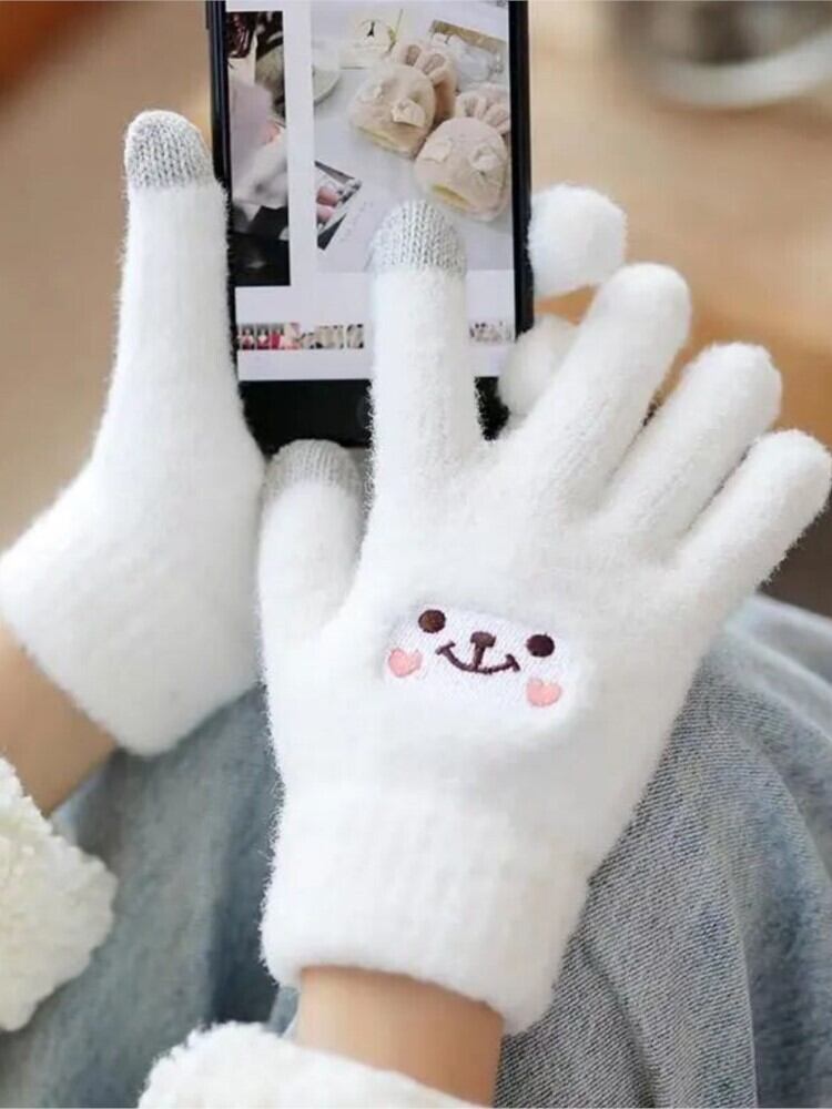 スマイルフェイス女性手袋ニット冬模造ミンクカシミヤ漫画暖かいかわいい学生女の子タッチスクリーン弾性レディース手袋 エラスティック 伸縮 大人ガーリー スウィート キュート カジュアル ウィンター 冬物 bel26301273004 | aliel
