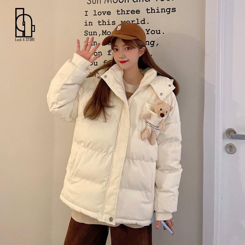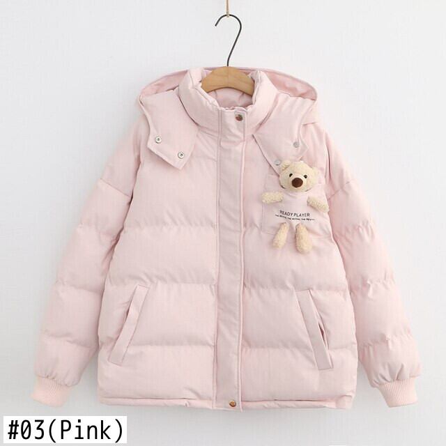 2021 女性固体冬のフード付きコート暖かい甘い長袖綿厚い生き抜くピンクの漫画のクマのジャケットパーカー ロング コットン 大人ガーリー スウィート キュート カジュアル ウィンター 冬物 ソリッドカラー bel49150502285 | aliel