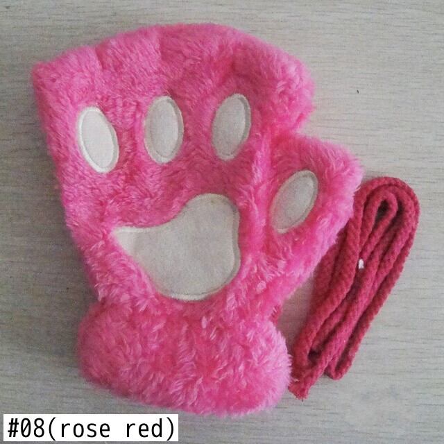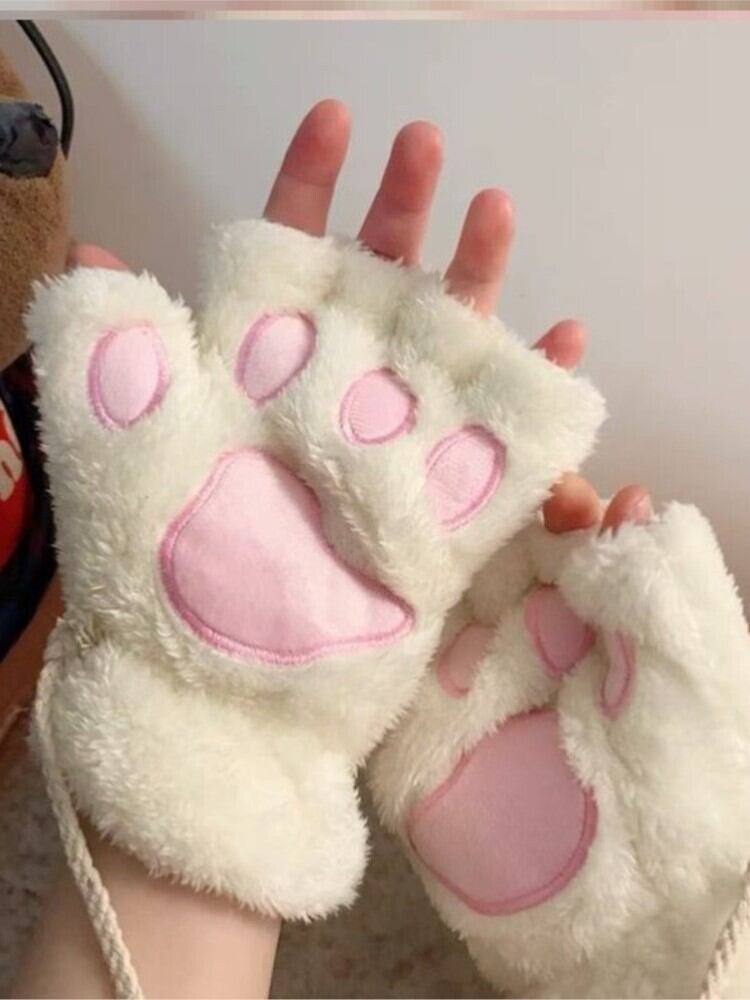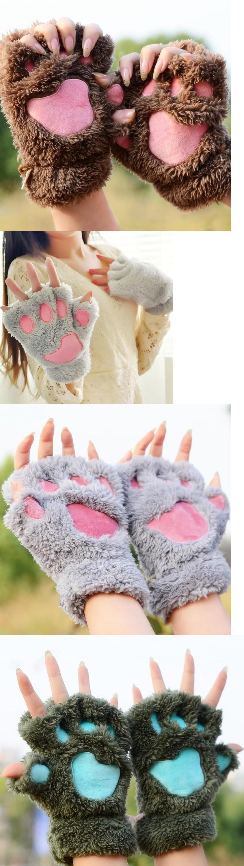 女性かわいい猫の足ぬいぐるみミトン手袋暖かいソフトぬいぐるみショート指なしふわふわクマ猫手袋ハーフフィンガーパーティーギフト 大人ガーリー スウィート キュート カジュアル bel57247599169 | aliel