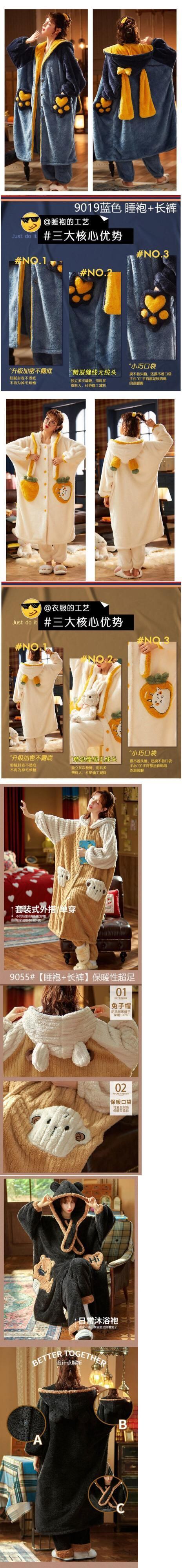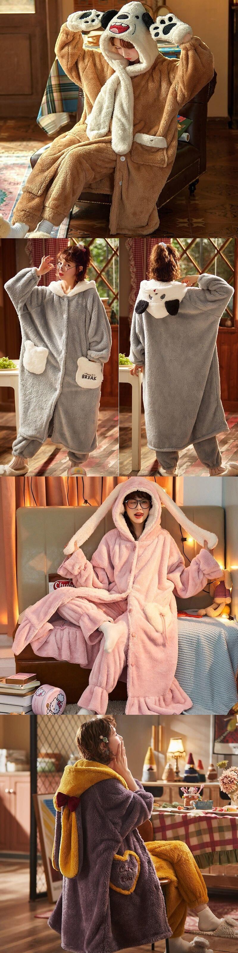パジャマセット女性フランネル暖かい動物の耳の帽子緩いパジャマ Comt 冬厚い甘い学生パジャマ長袖 ロング 大人ガーリー スウィート キュート カジュアル ウィンター 冬物 bel71580945178 | aliel
