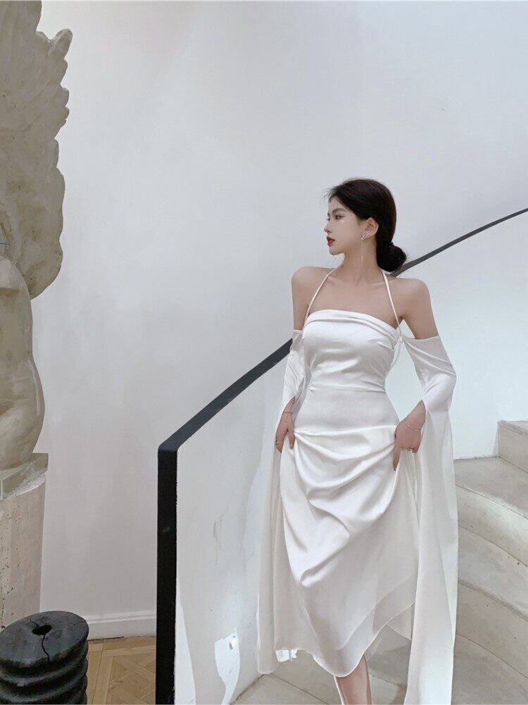 2022 女性の夏のサテンシルキーオフショルダースリムホワイトカクテルドレスレディパーティーマキシドレス vestidos デフィエスタパラ bodas サマー 夏物 bel34010725115 | aliel