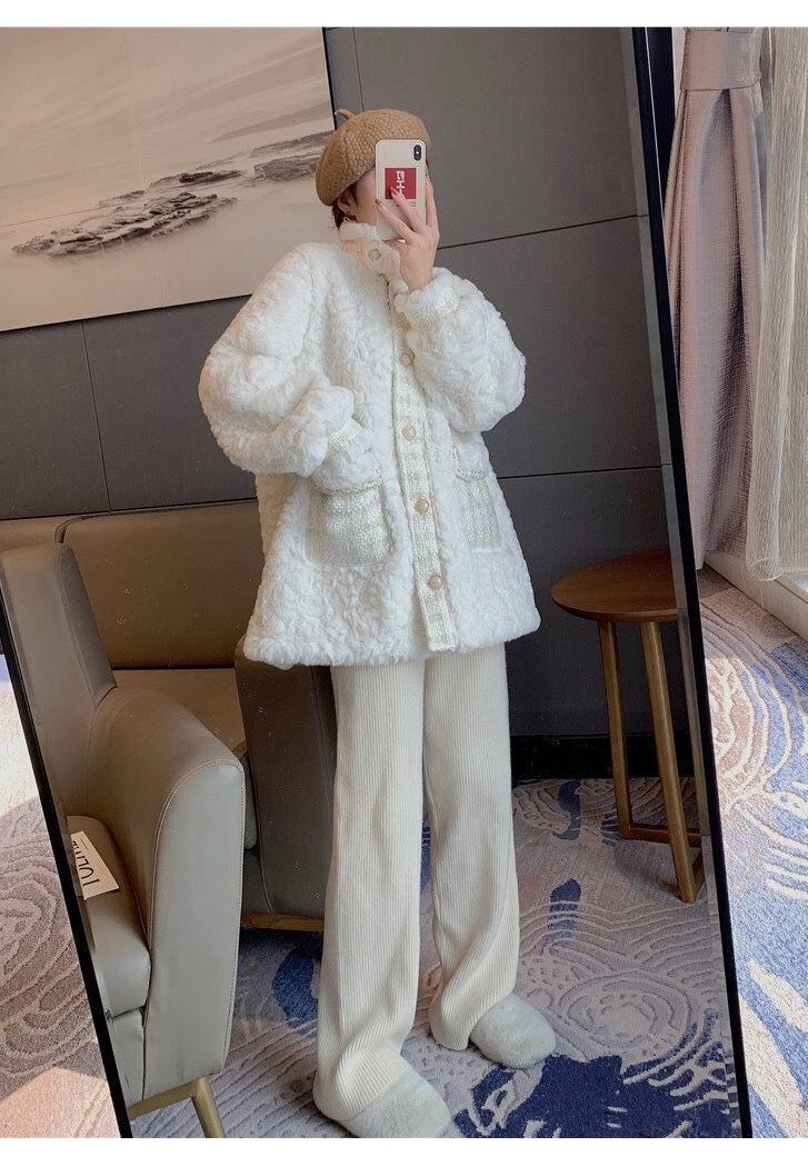 フェイクウサギの毛皮のコートの女性の裏地スエードラムズウール秋冬暖かい豪華なジャケット高級ルーズオートバイコート スウェード オータム 秋物 ウィンター 冬物 ファー bel71226667249 | aliel