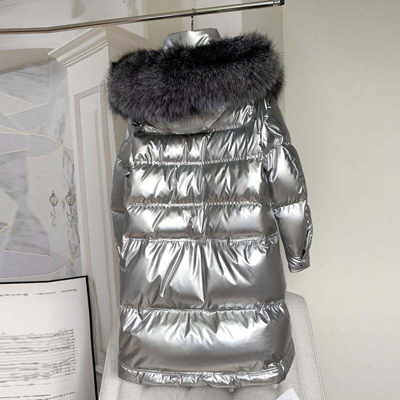 冬のリアルナチュラルフォックスファーフード付きパテントレザーダウンロングジャケット女性 90% ホワイトダックダウン防水コート暖かい生き抜く ウィンター 冬物 天然 bel47915074897 | aliel