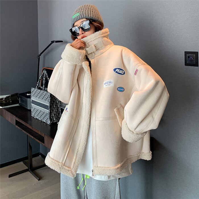 子羊ウールのオーバーコート 2021 秋冬緩い大サイズの女性のスエード厚みのオートバイのジャケット スウェード 大きめサイズ オータム 秋物 ウィンター 冬物 bel37263756527 | aliel