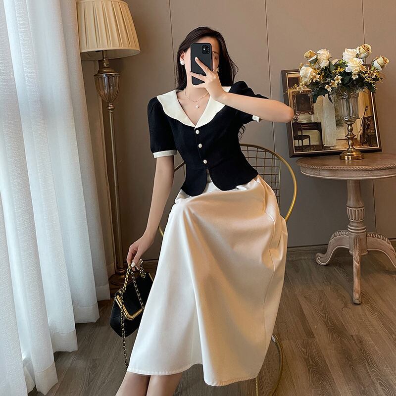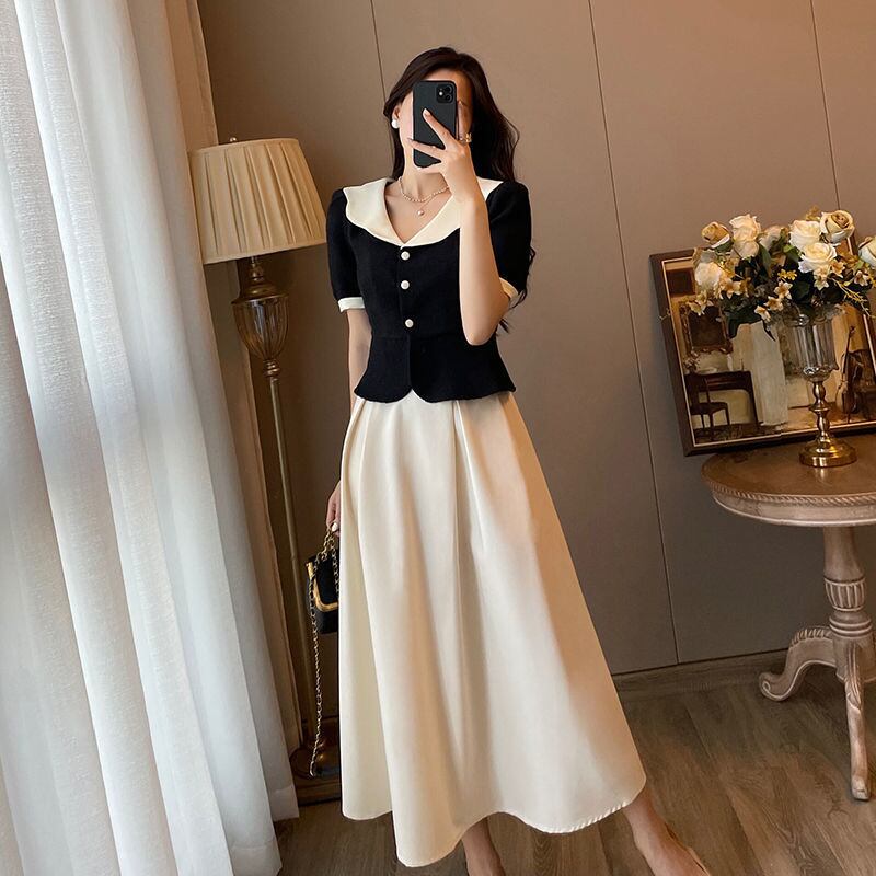 2022 夏セット半袖ブラウス + ウエスト ミディ スカート 2 ピース スーツ オフィス スーツ ショート ハーフスリーブ サマー 夏物 会社 学校 通勤や通学にも bel98613386947 | aliel