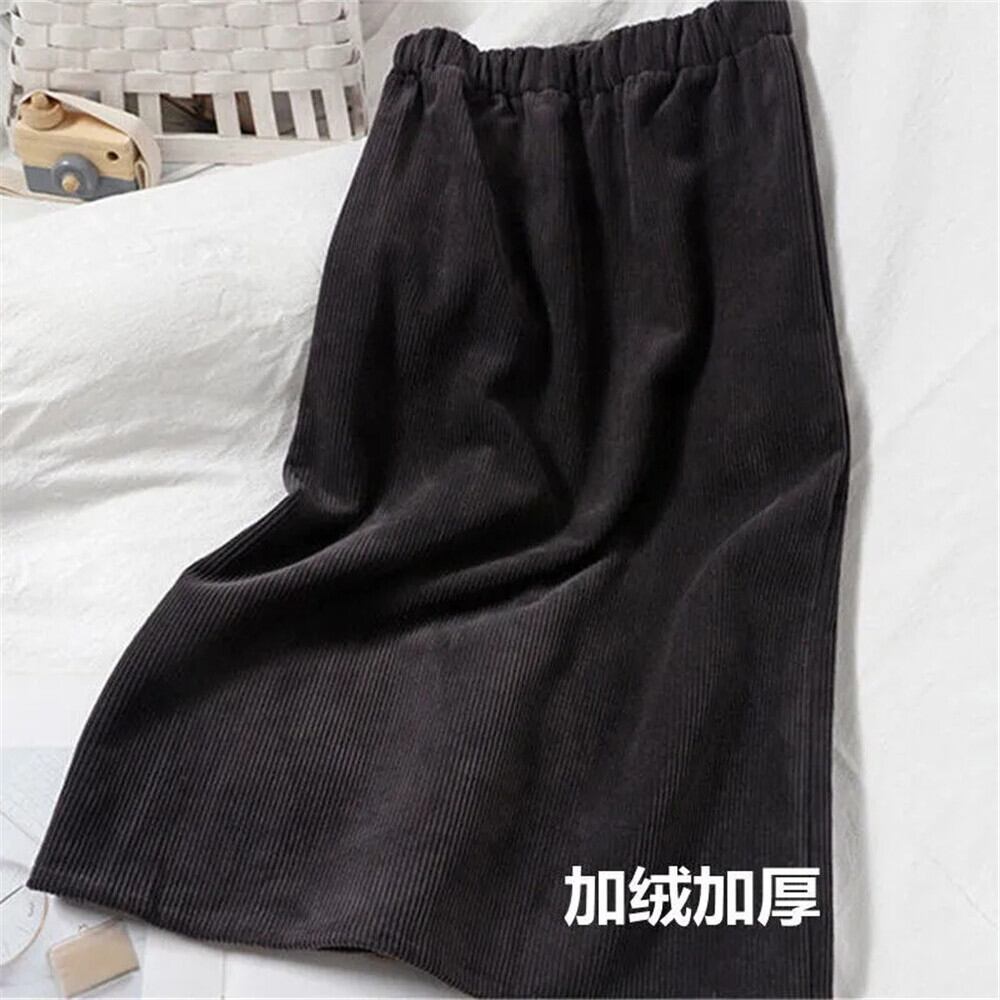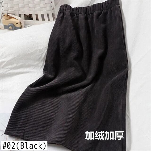 コーデュロイプラスベルベットヒップスカート黒弾性ウエストロングスカート女性バックスプリット冬暖かい厚みのミディスカート ブラック エラスティック 伸縮 ウィンター 冬物 bel85387613288 | aliel