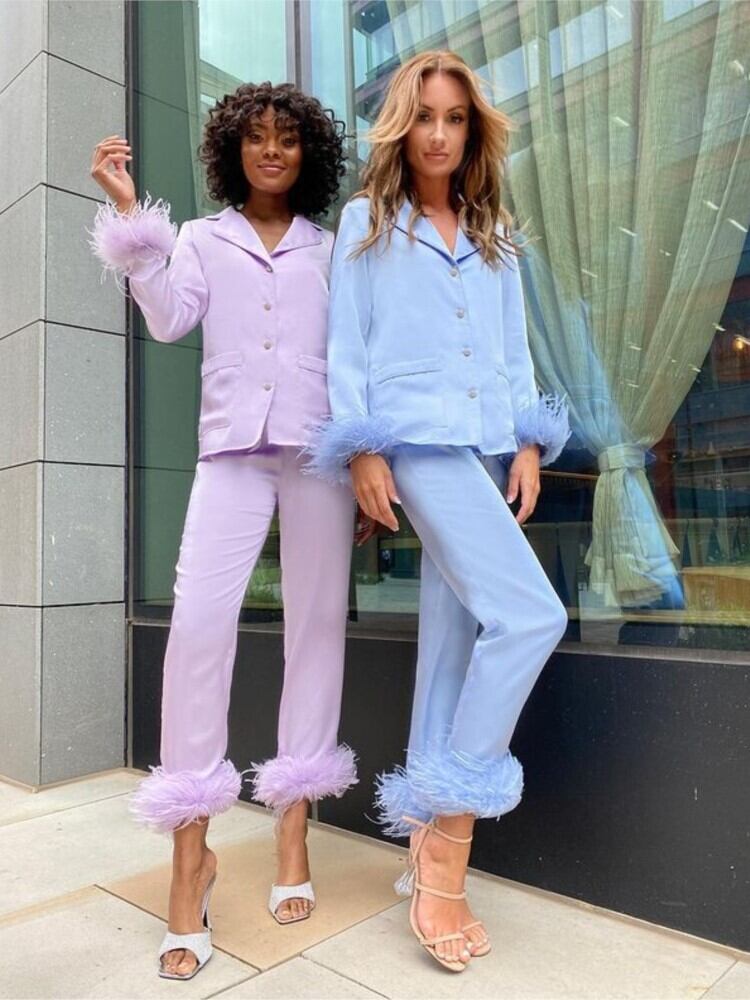 フェザーファー V ネックシングルブレストフルスリーブブラウストップスとパンツラウンジスーツ女性無地パジャママッチング SetS Vネック ソリッドカラー bel92116768710 | aliel