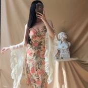 フレンチスウィート花柄ドレス女性スパゲッティストラップビーチドレス夏オフィスレディパーティー Vestidos 大人ガーリー キュート カジュアル サマー 夏物 会社 学校 通勤や通学にも bel2217063842 | aliel