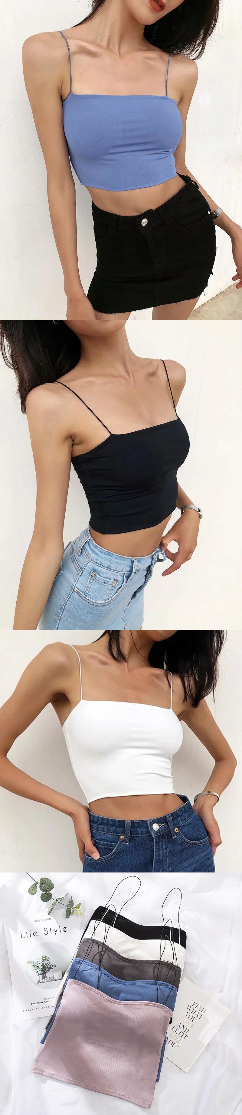 女性スパゲッティストラップ胸パッドキャミソールセクシーな夏のタンクトップソリッド女性生き抜くシンプルなオールマッチシックなトップ サマー 夏物 ソリッドカラー bel31297687045 | aliel