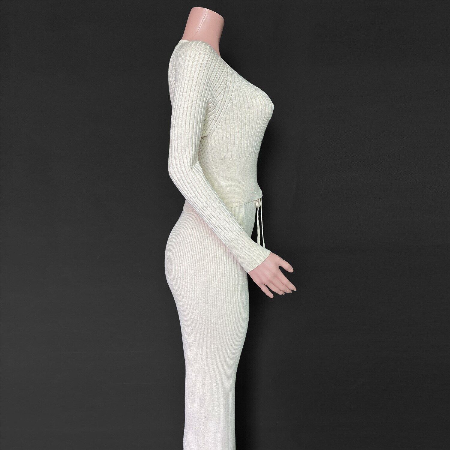 ニットトラックスーツ 2 ピーススーツ女性秋長袖ツーピースセットセータートップとワイドレッグパンツ女性スーツ生き抜く ロング オータム 秋物 ワイドパンツ bel79658077799 | aliel