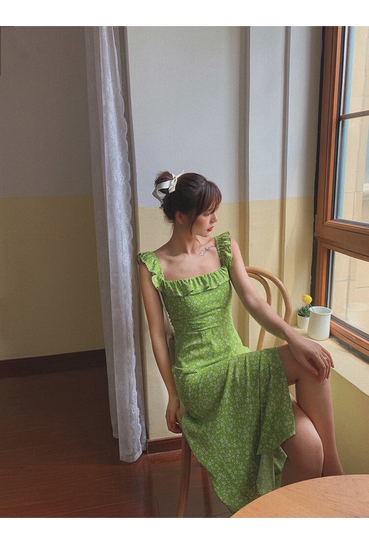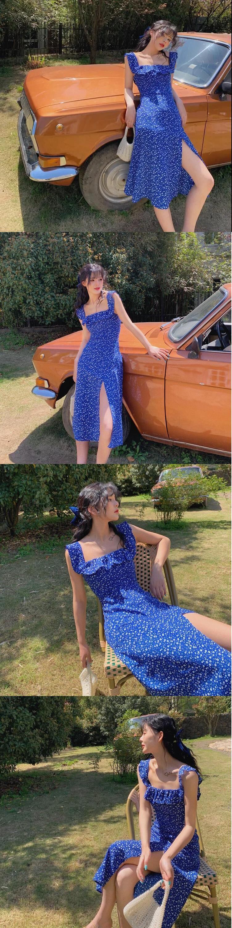 花フレンチドレスの女性の夏のストラップレススプリットロングパープルドレスプリントシックなレトロな甘い自由奔放に生きるドレス Vestidos 大人ガーリー スウィート キュート カジュアル サマー 夏物 花柄 bel21834006250 | aliel