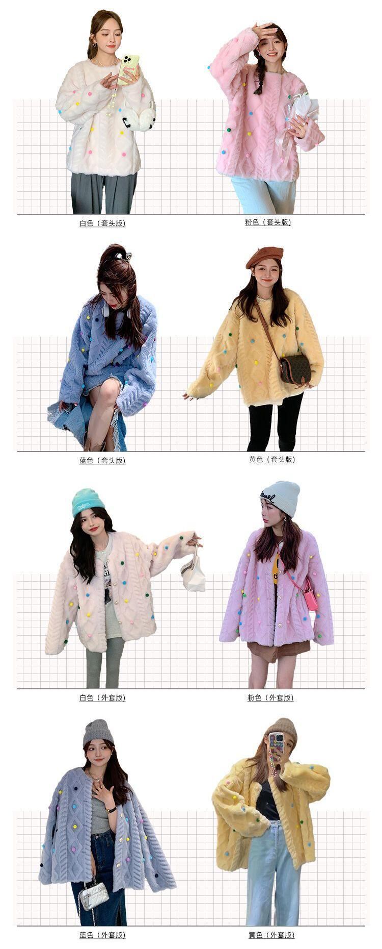 色:01(イエローカーディガン),02(イエロープルオーバー),03(パープルカーディガン),04(パープルプルオーバー),05(ピンクカーディガン),06(ピンクプルオーバー),07(ブラックカーディガン),08(黒のプルオーバー),09(ブルーカーディガン),10(ブループルオーバー),11(レッドカーディガン),12(レッドプルオーバー),13(白カーディガン),14(白プルオーバー)