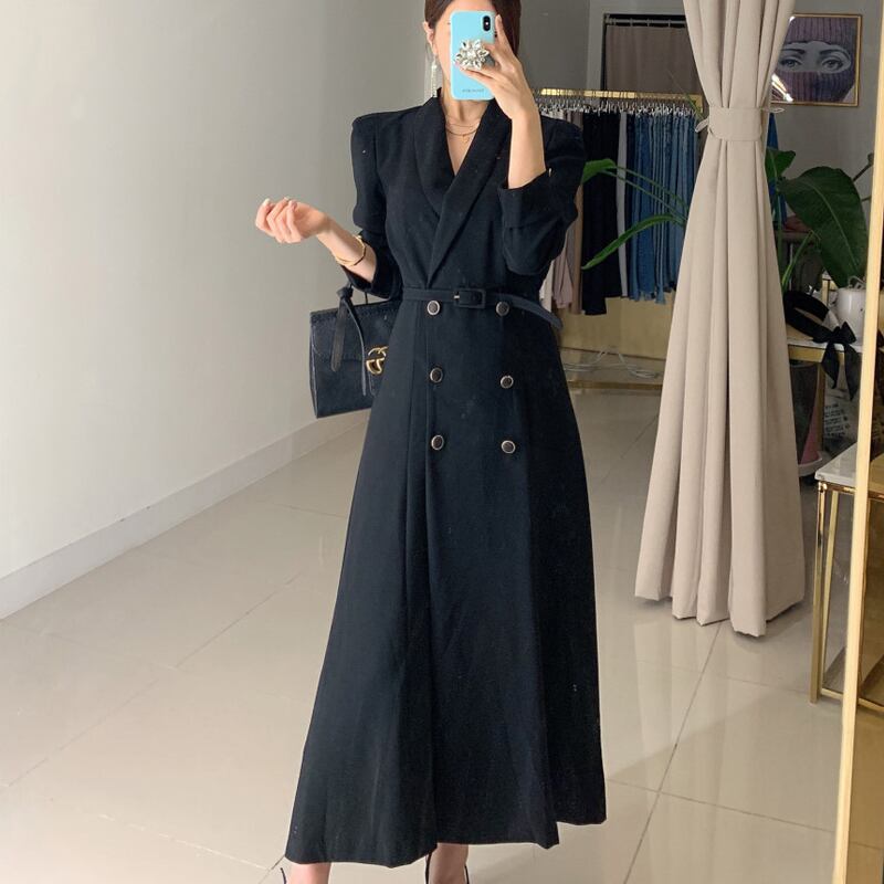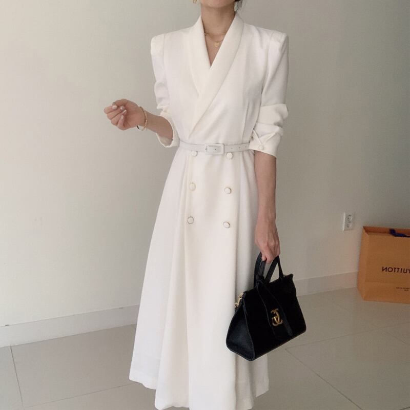 春と秋の女性のドレス無地ダブルブレストベルト装飾ドレスオフィスレディドレス スプリング 春物 オータム 秋物 ハーネス ソリッドカラー 会社 学校 通勤や通学にも bel92051599835 | aliel