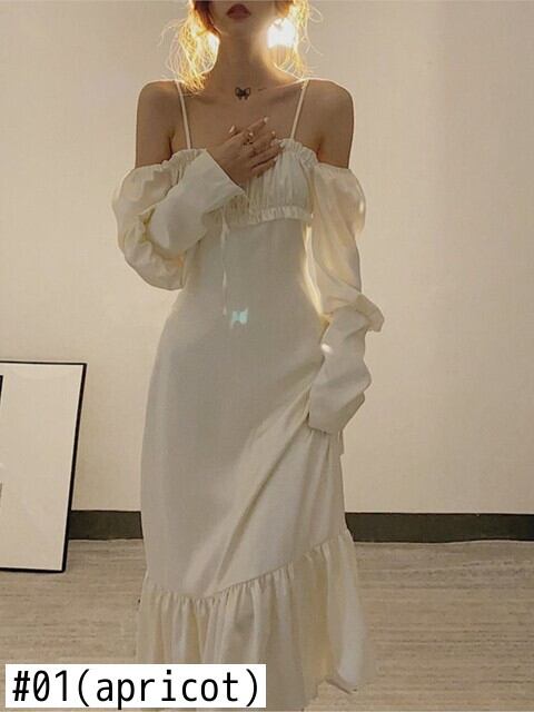 2022 夏スタイルレトロスウィートワンショルダースクエアネックパフスリーブトランペットドレス女性のセクシーなひだ白ドレス ホワイト 大人ガーリー キュート カジュアル サマー 夏物 スクウェア bel75604997548 | aliel
