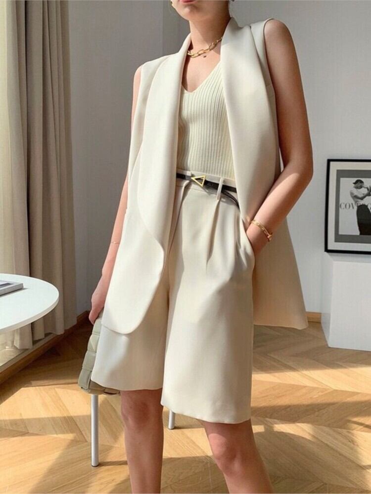 2022 フレンチ気質ツーピースノースリーブベストスモールスーツトップオフィスショーツスーツ女性の女性ブレザーセット ブルマー 会社 学校 通勤や通学にも bel47592998758 | aliel