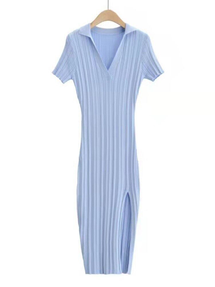 ポロ襟ニット ドレス イン トレンド 2022 ヨーロッパとアメリカの女性の夏の新しい サイド スリット バッグ ヒップ v ネック ボディコン ドレス サマー 夏物 Vネック ヨーロピアン bel48405668860 | aliel