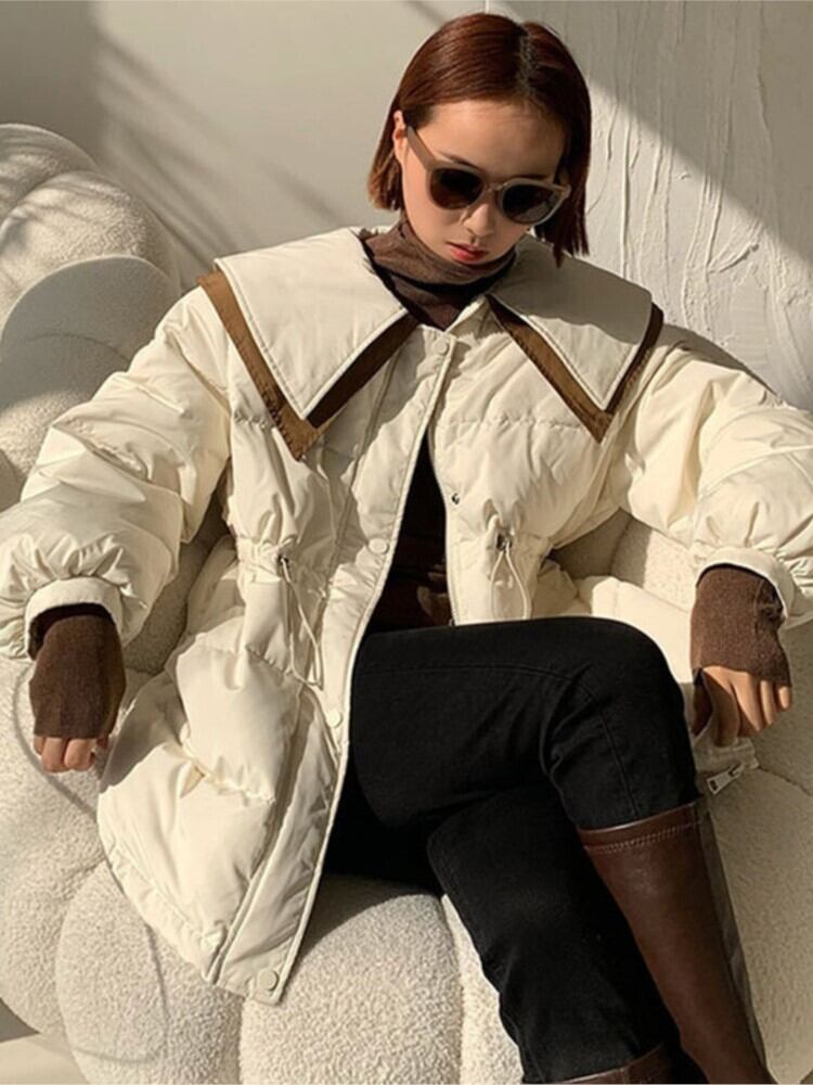 2022 女性固体 90% ホワイトダックダウンコートスウィートピーターパン襟パーカー女性 Outerwears 大人ガーリー キュート カジュアル ソリッドカラー bel12807106263 | aliel